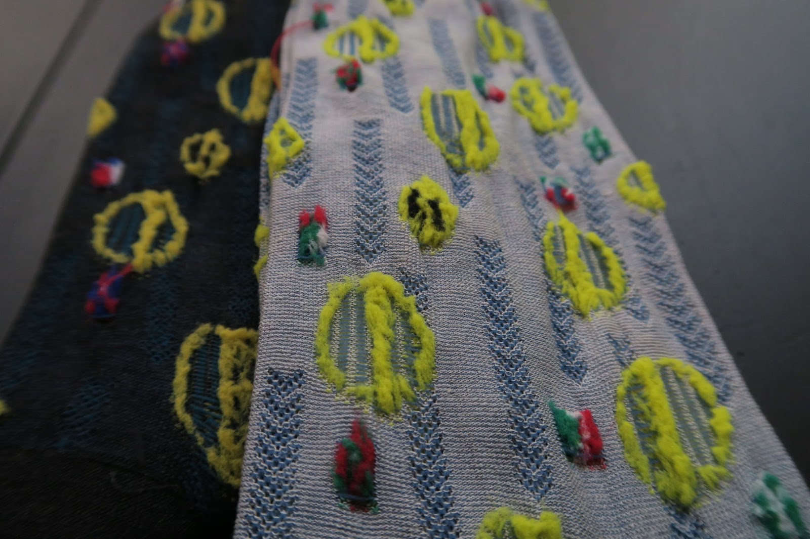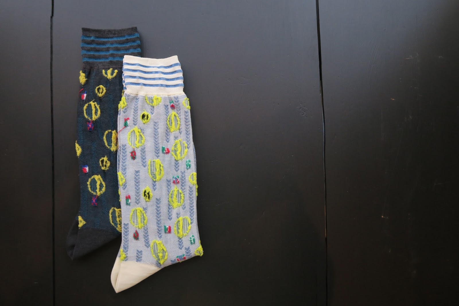 彼女の作る靴下は、こんなに派手なのに、