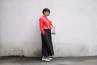 晩夏に、evam eva のリネンニットと合わせて秋色で。