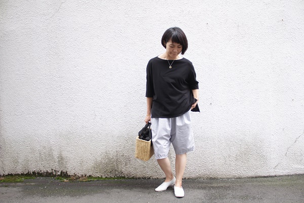 洒落たショートパンツにブラック。