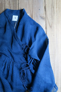 タッセルロープを結わいて、カシュクールブラウスとして。