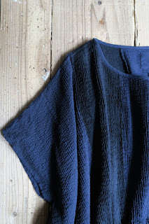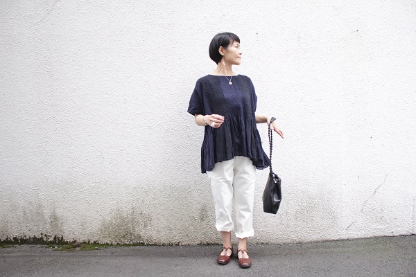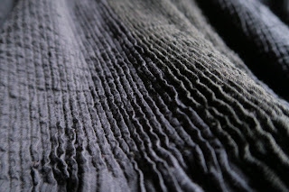 全部で3種類の布地がストライプ上にパッチワークになっている。