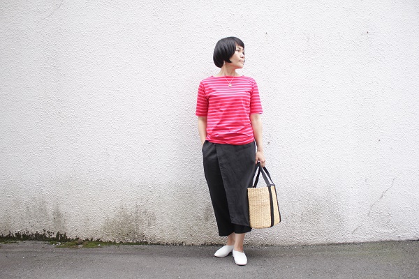 ブラックには発色のいい元気なピンクボーダー。