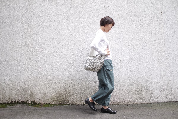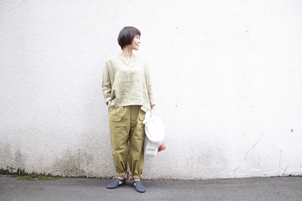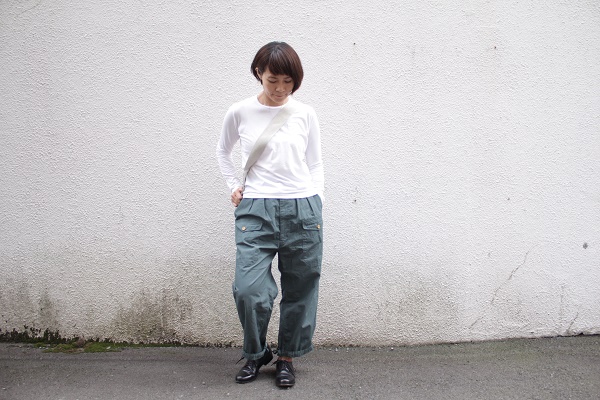 たっぷりしたトップスには、裾絞りで。