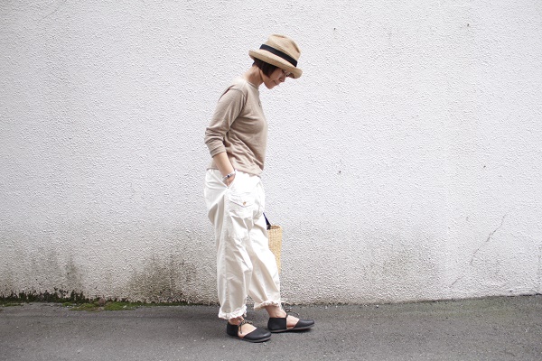 サンダルは全体を見せて軽快に。
