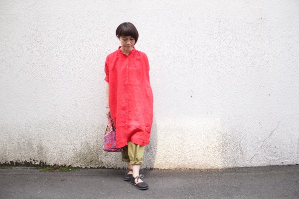 Honnete のマンダリンブラウスに同系色で。