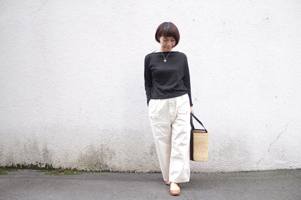 生成りにブラックを合わせてモノトーンに時にカッコよく。