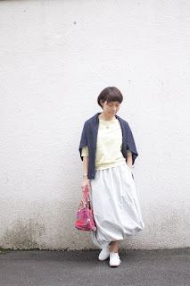Honnete のギャザーブラウスをタックインして着てみよう。