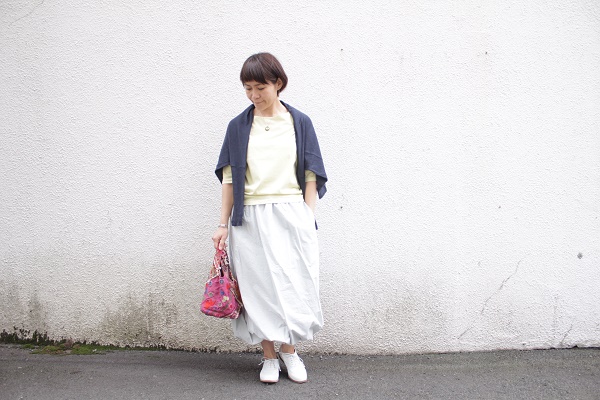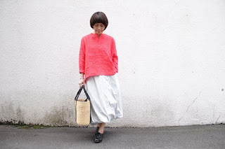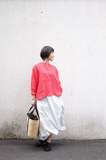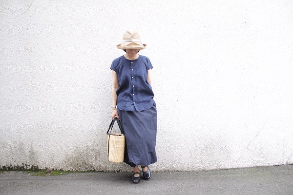 Honnete のギャザーブラウスをタックインして着てみよう。