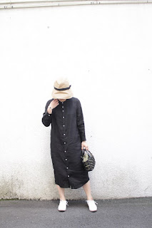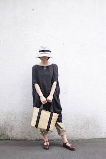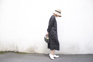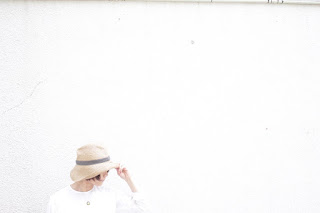 こちらは、ツバを下して、クラシカルな日よけスタイル。
