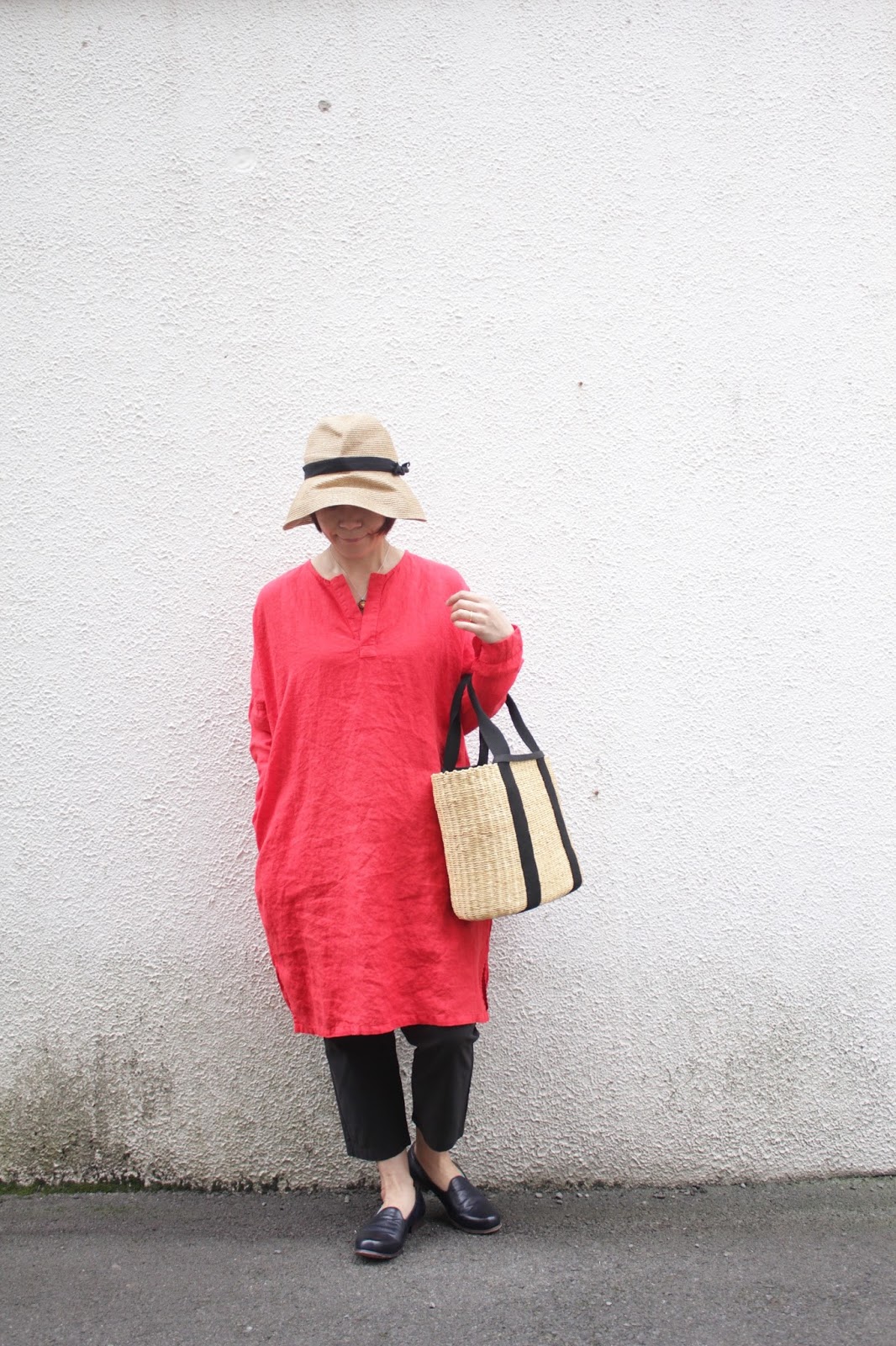 こちらは、ツバを下して、クラシカルな日よけスタイル。