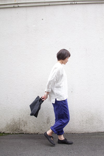 麻のパンツにシンプルに。