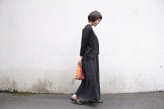 ブラックは、リネンのブラックのニットを重ねた