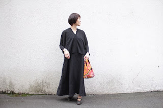 ブラックは、リネンのブラックのニットを重ねた