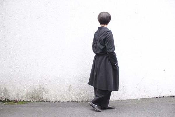 少し個性的なオールブラックコーディネート。