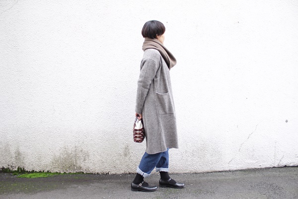 羊の毛のセーターに、アルパカの毛のローブをまとい、