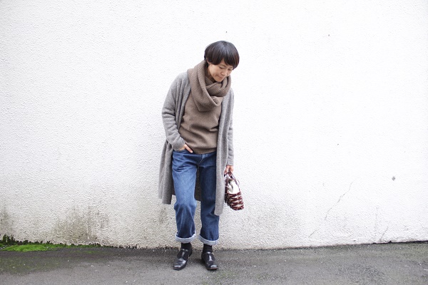 アルパカと羊の毛が混じったストールを巻いて温かく。。