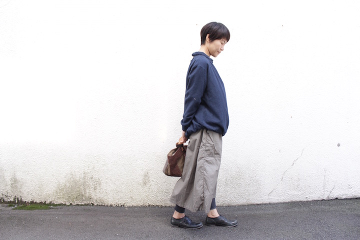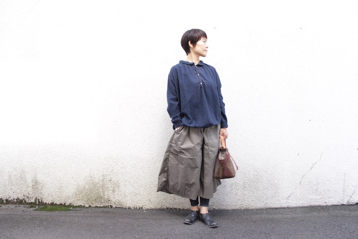 ARTEPORVERA のギャザリングキュロットにネイビー。