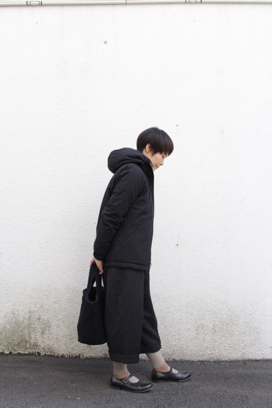 ブラックはsusuri のワイドパンツに、少し個性的に。