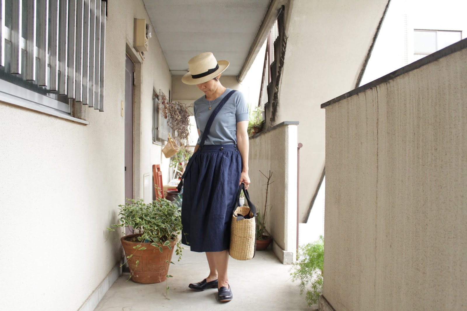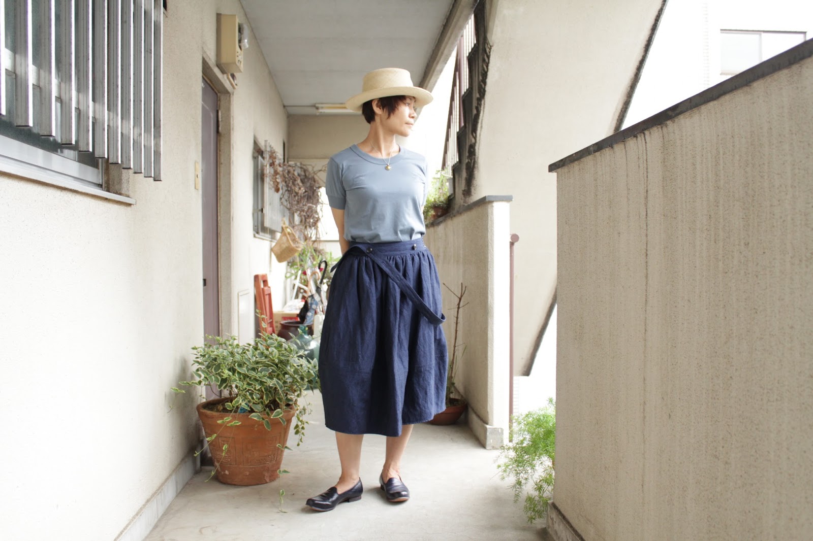 夏のお洋服を用いた、晩夏スタイルの
