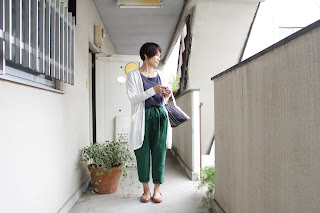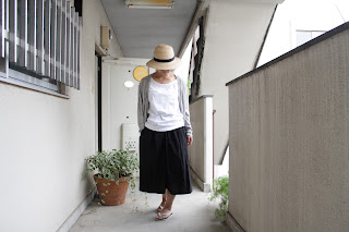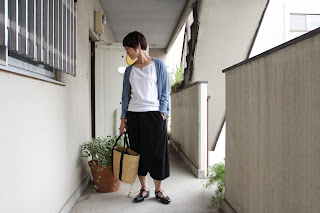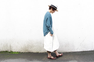 ロケットスカートのストライプに、T-シャツをタックイン。