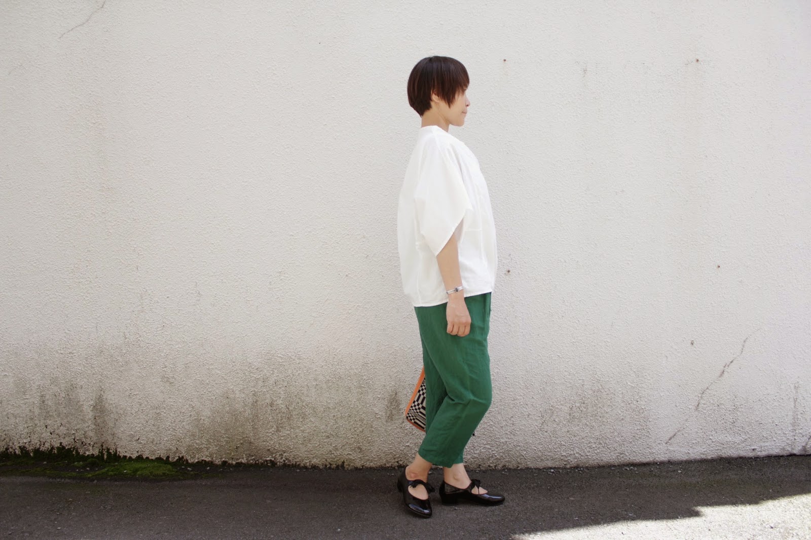 このデザインは、少ししっかりした生地のほうが良く似合う。