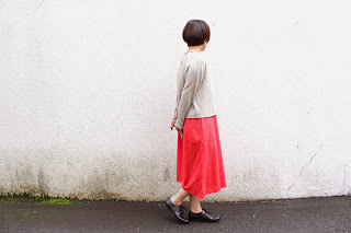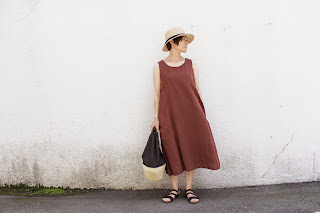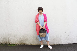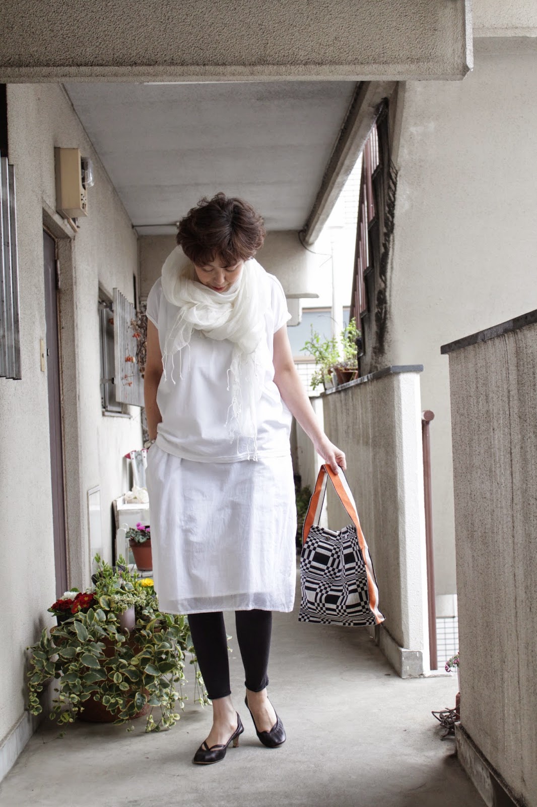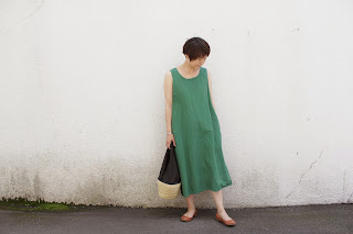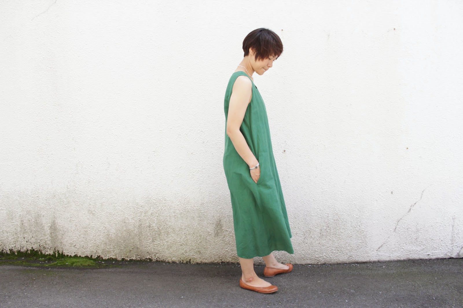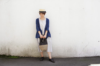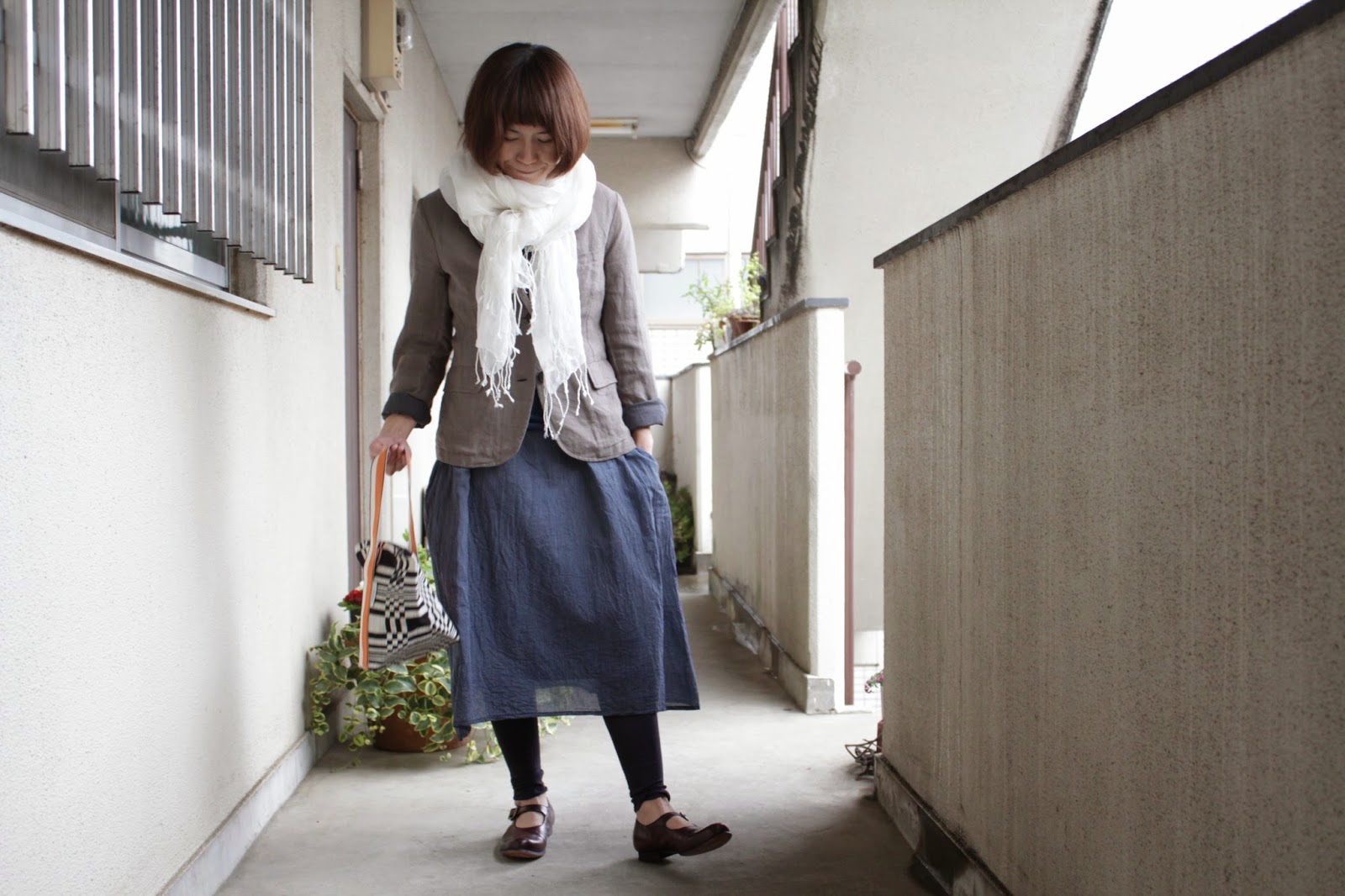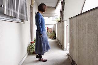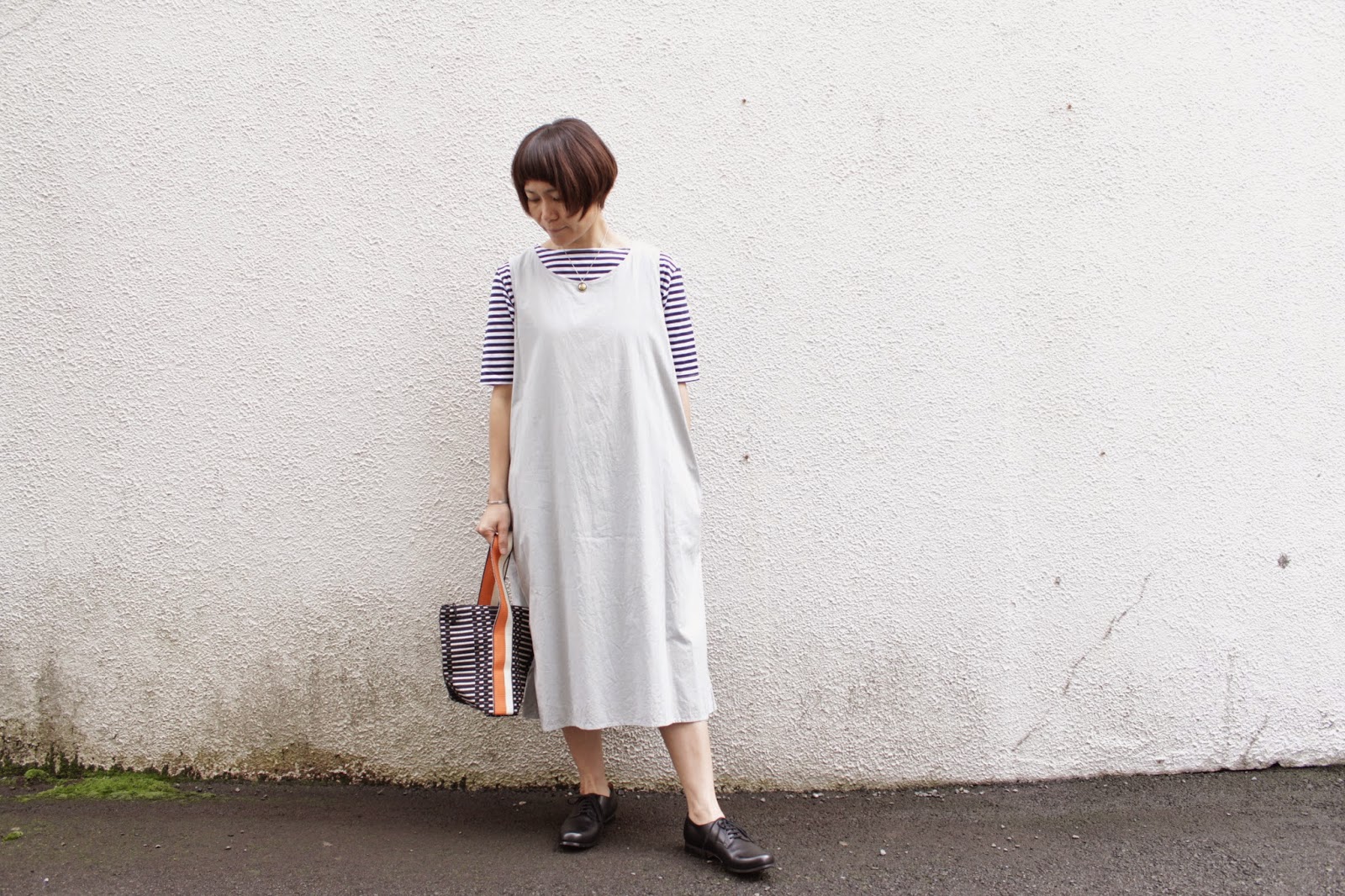 上から、ao の藍染めのカシュクールチュニックを羽織り、