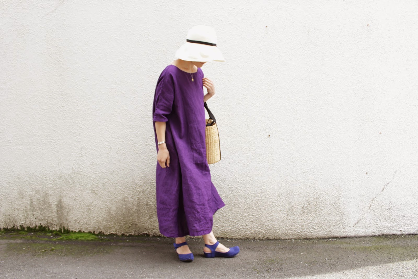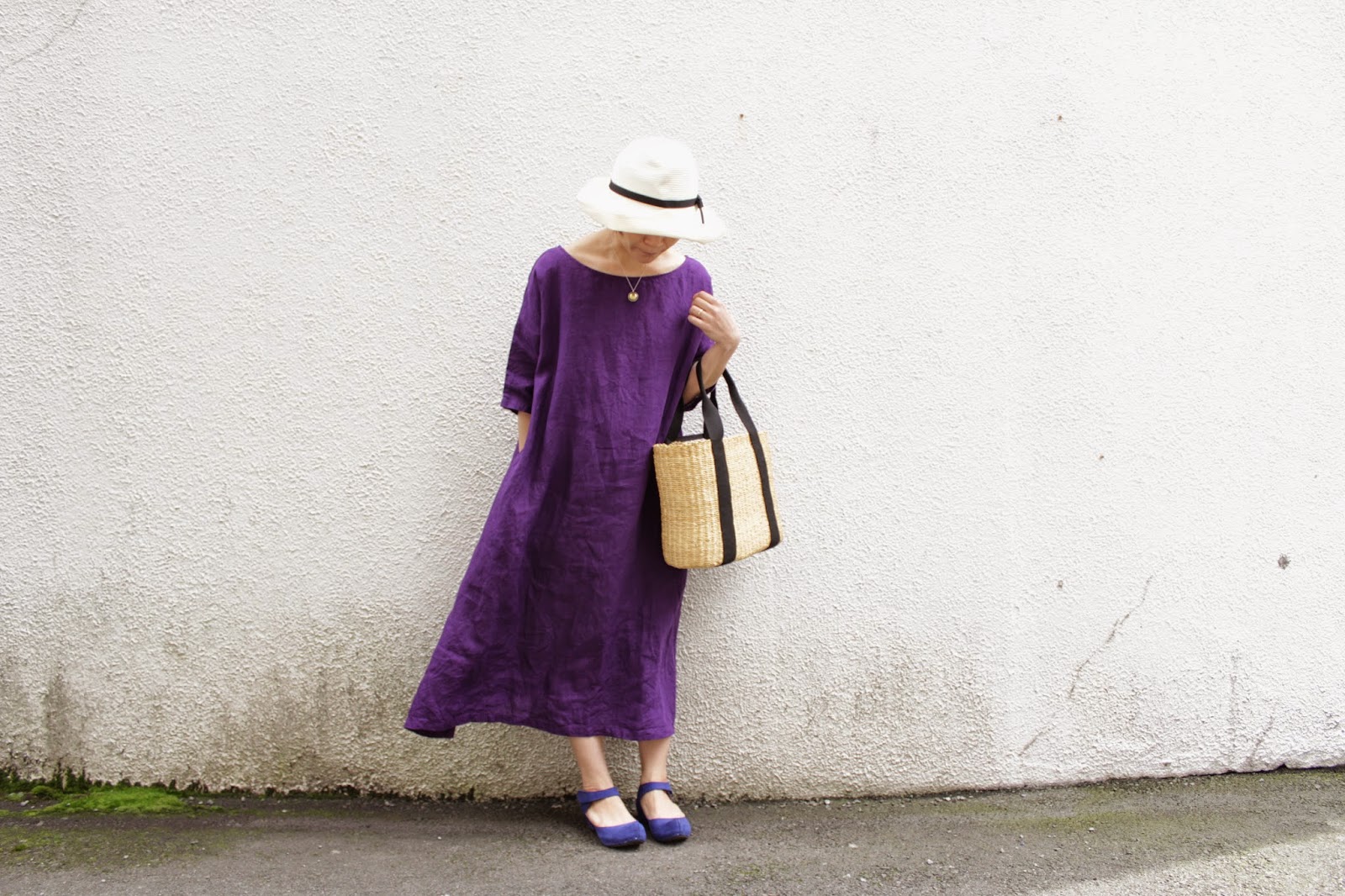 肩から掛けて、帽子をとって革靴でしまりのあるスタイル。