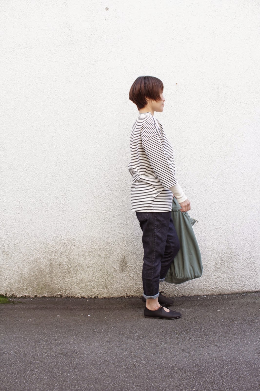 ロールアップで、でかい鞄で軽快に。
