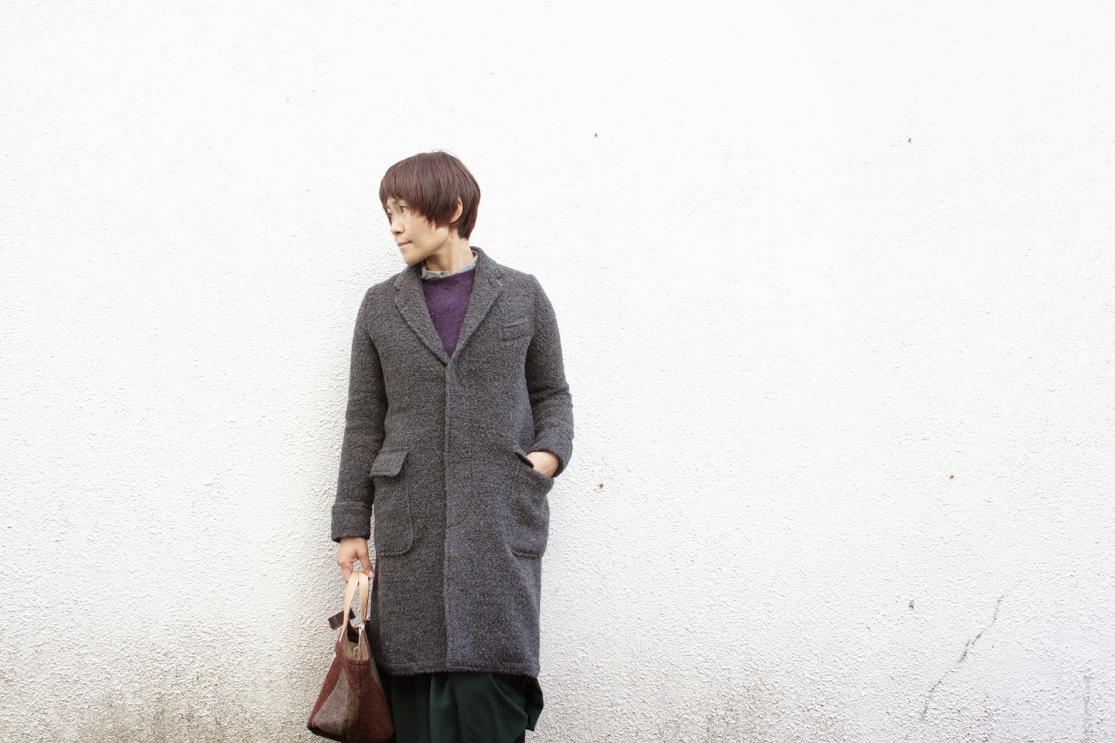ループツイードのコート。