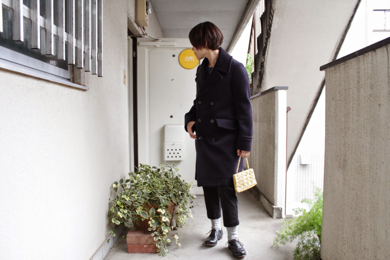 マリンなピーコートのニュアンスが混じり合い、