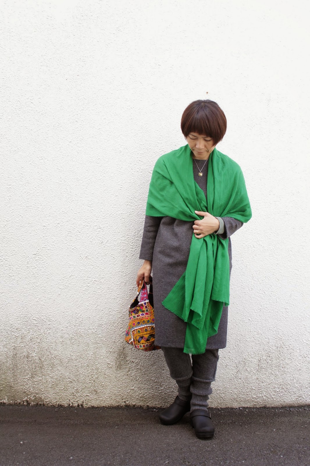 上から糸衣のカシミヤガウンを羽織って暖かく。