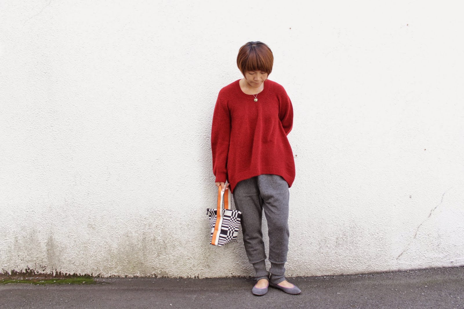 FACTORY の裾カーブセーターに合わせて、パンプスでラフに。