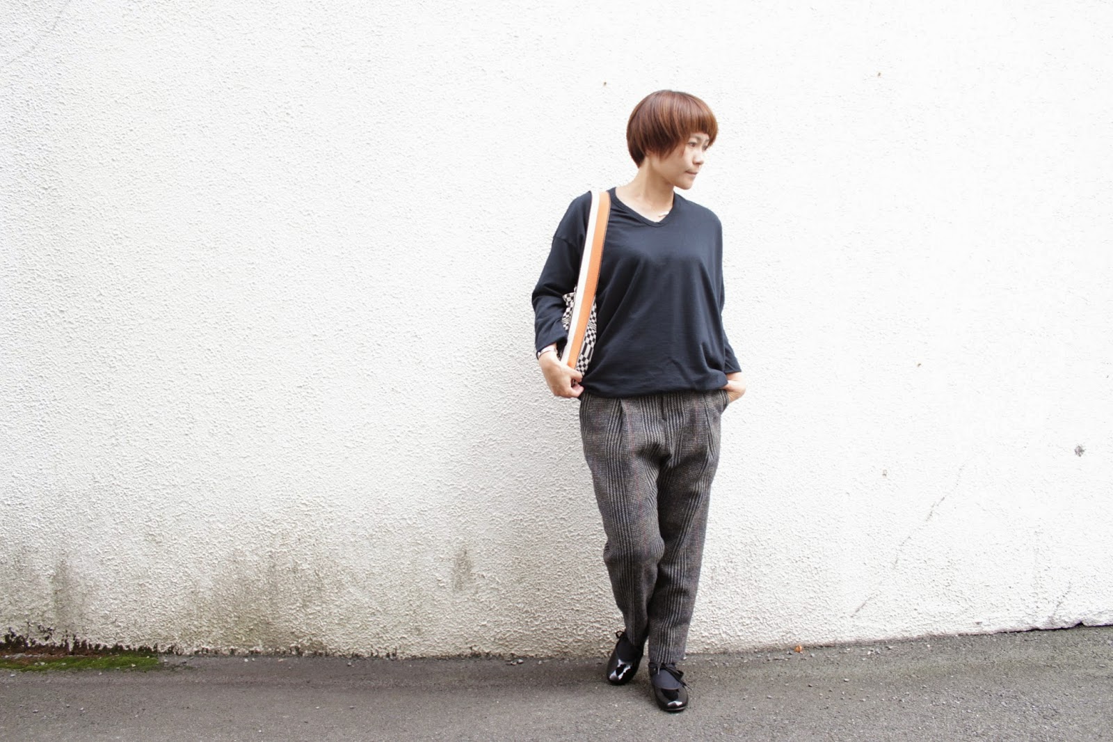 no control air のトップスをあわせて、マニッシュに。
