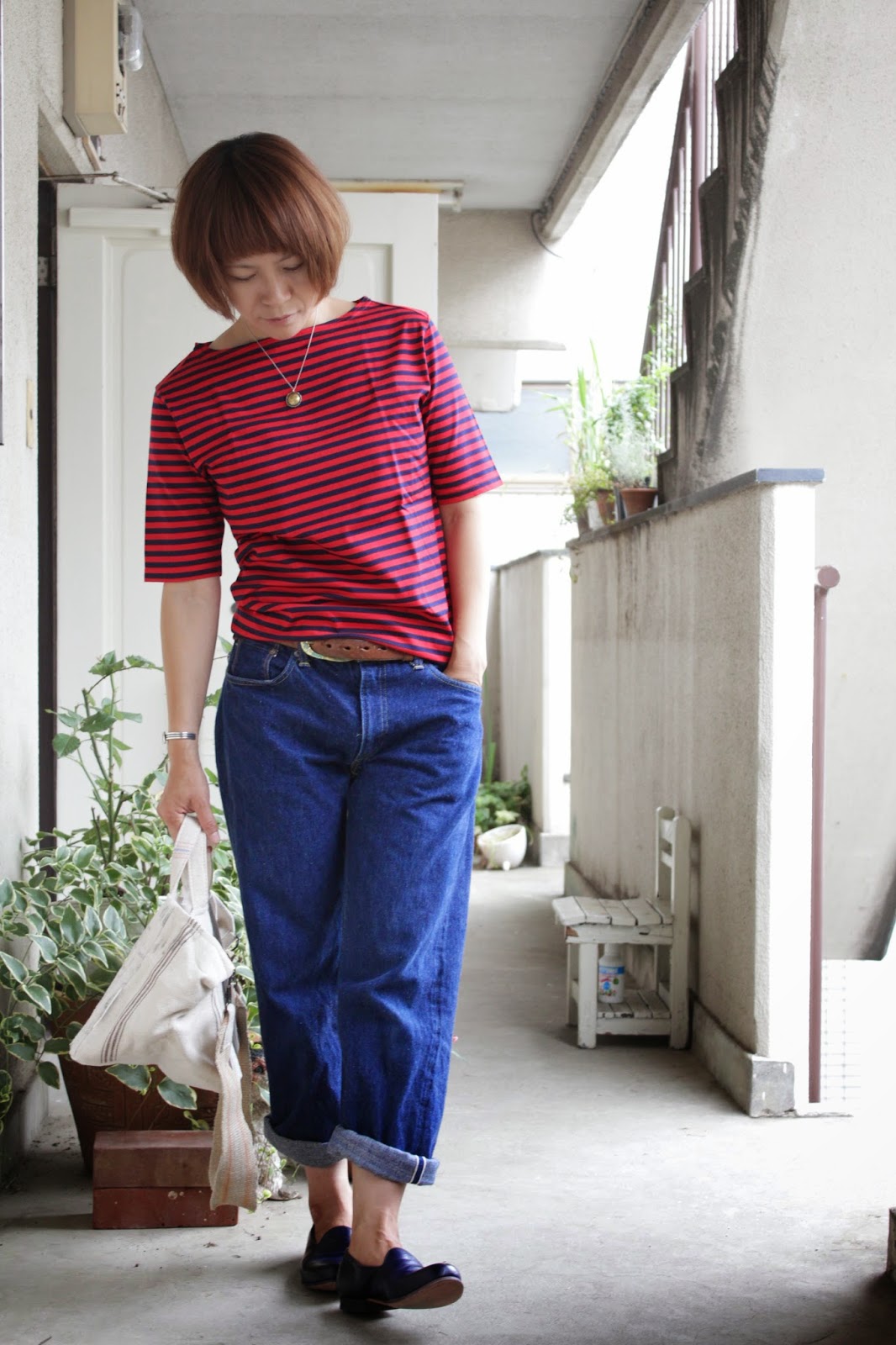 妻のデニムも、いい感じに色落ちしてきました。