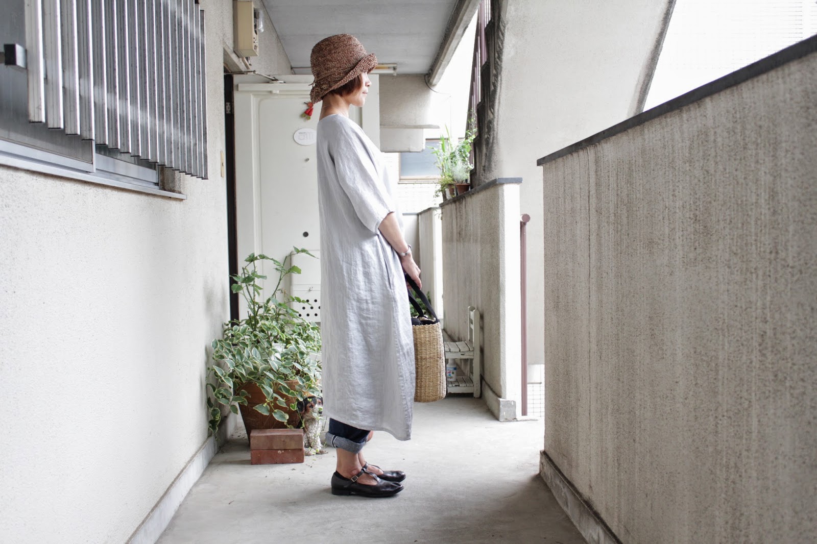 夏の帽子で日よけして。