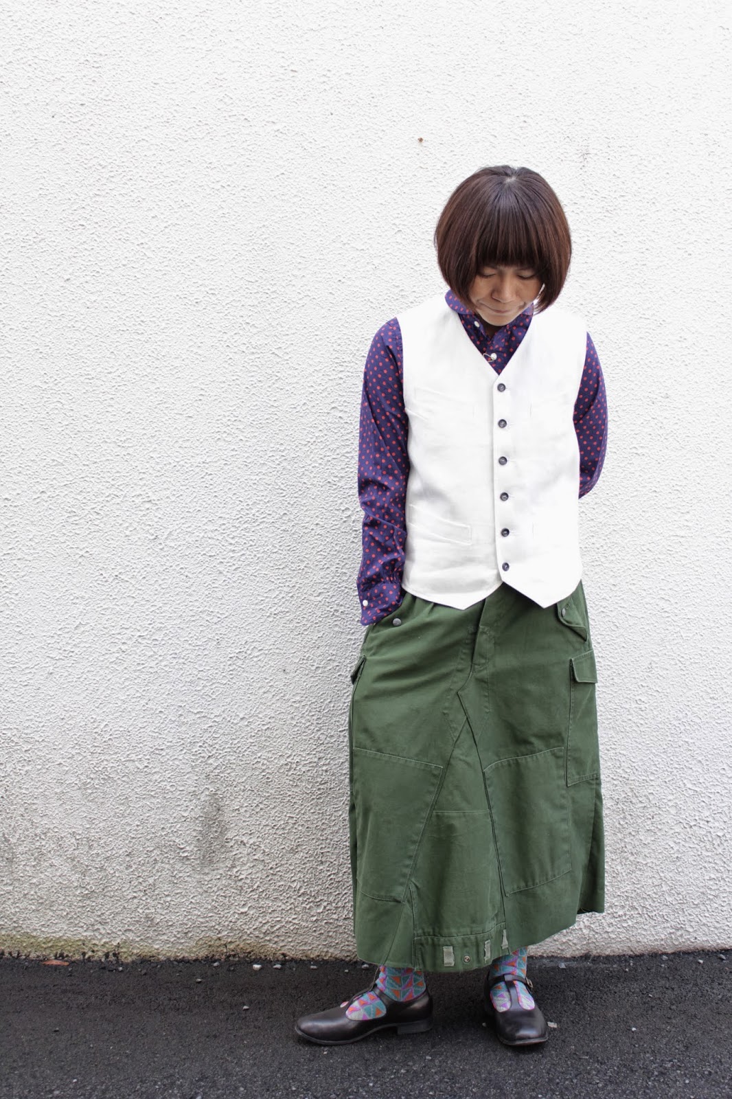 マニッシュなオッドベストを合わせてもかっこいい。