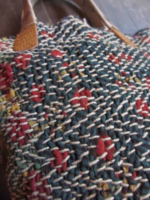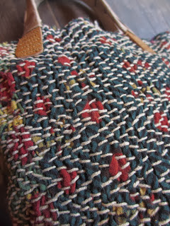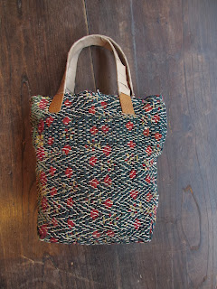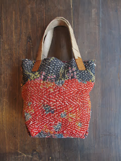 古い布地で作った小さなカバンが、所狭しと並んでいて、