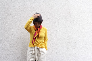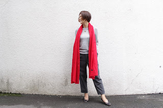 同系色のきれいなスカーフで花を添えます。