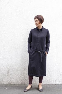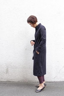 洋服に少ない色だけにインパクトが強い、ブルーグレー。