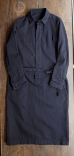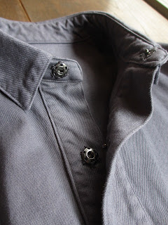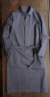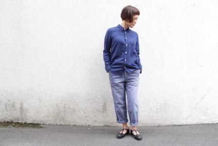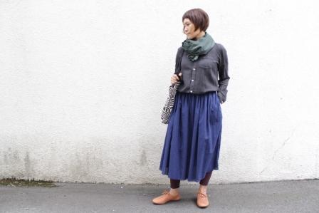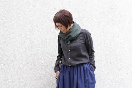 洋服に少ない色だけにインパクトが強い、ブルーグレー。