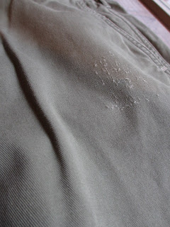 履きすぎてこすれる位置は、経糸がぼろぼろと