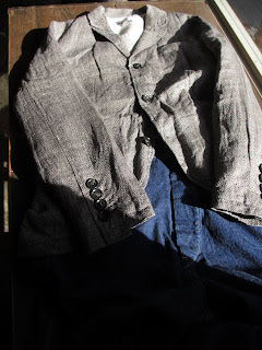 上着は少し春を意識して麻素材のジャカードジャケット。