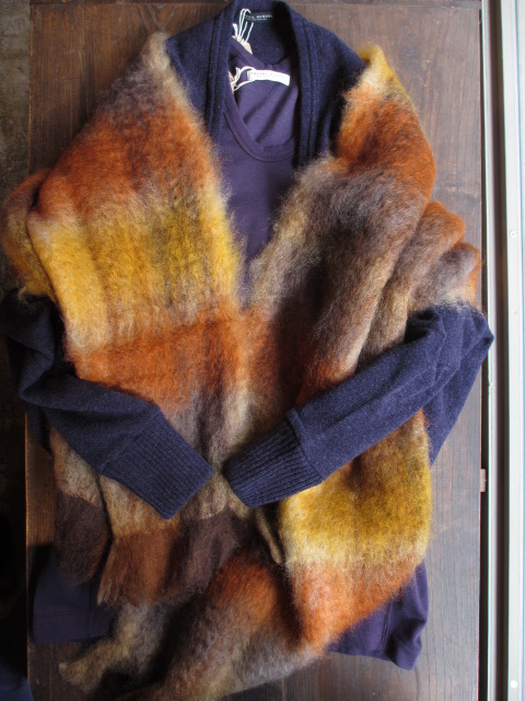 暖かいモヘアのショールを。