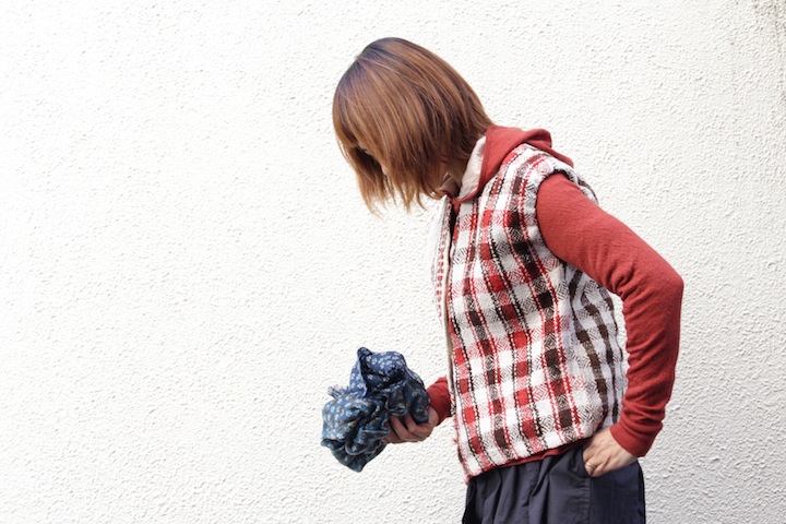 前身頃は、スナップボタンでアシンメトレーになっている。