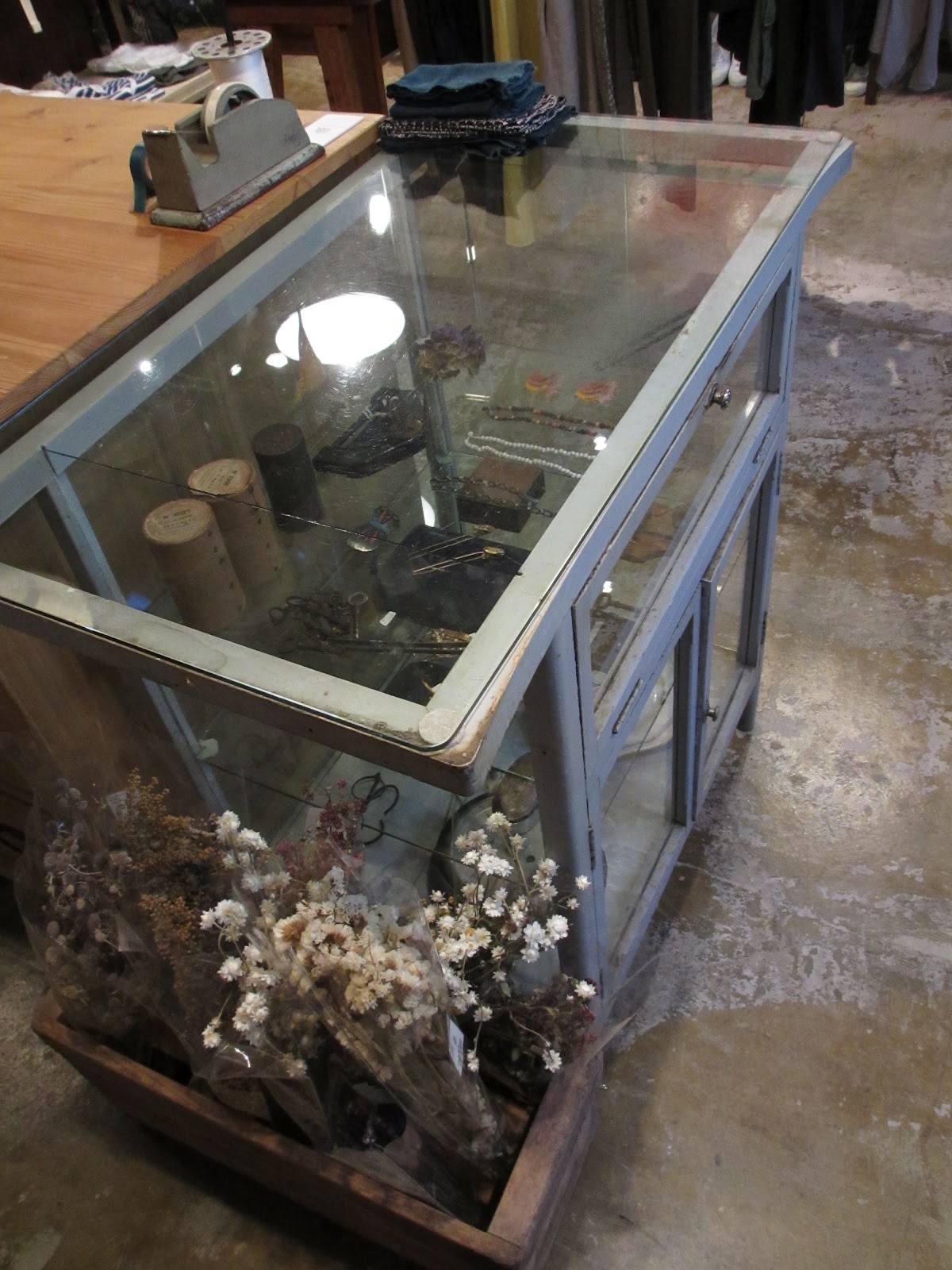 以前から気になっていたへんなガラス棚が売りに出してありました。