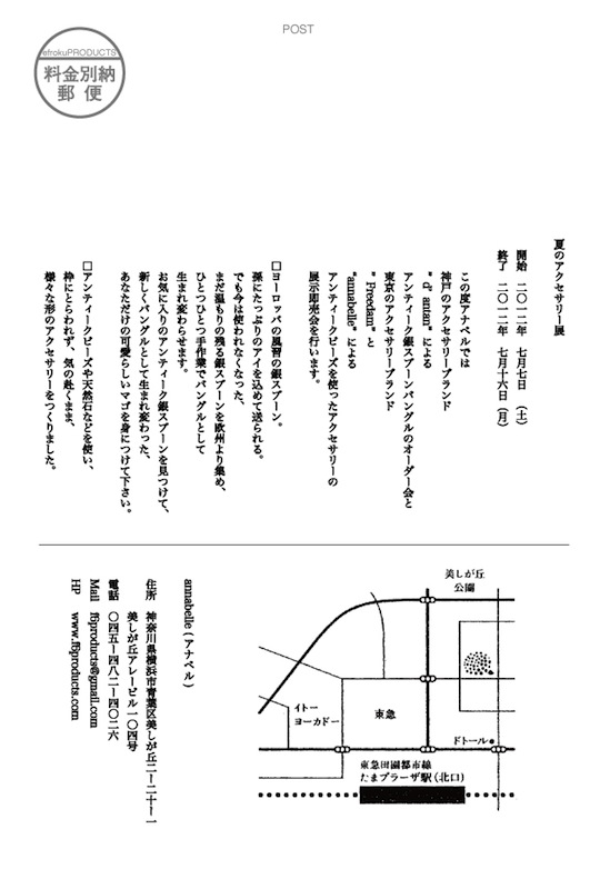 「夏のアクセサリー展」 銀のスプーンとアンティークビーズ