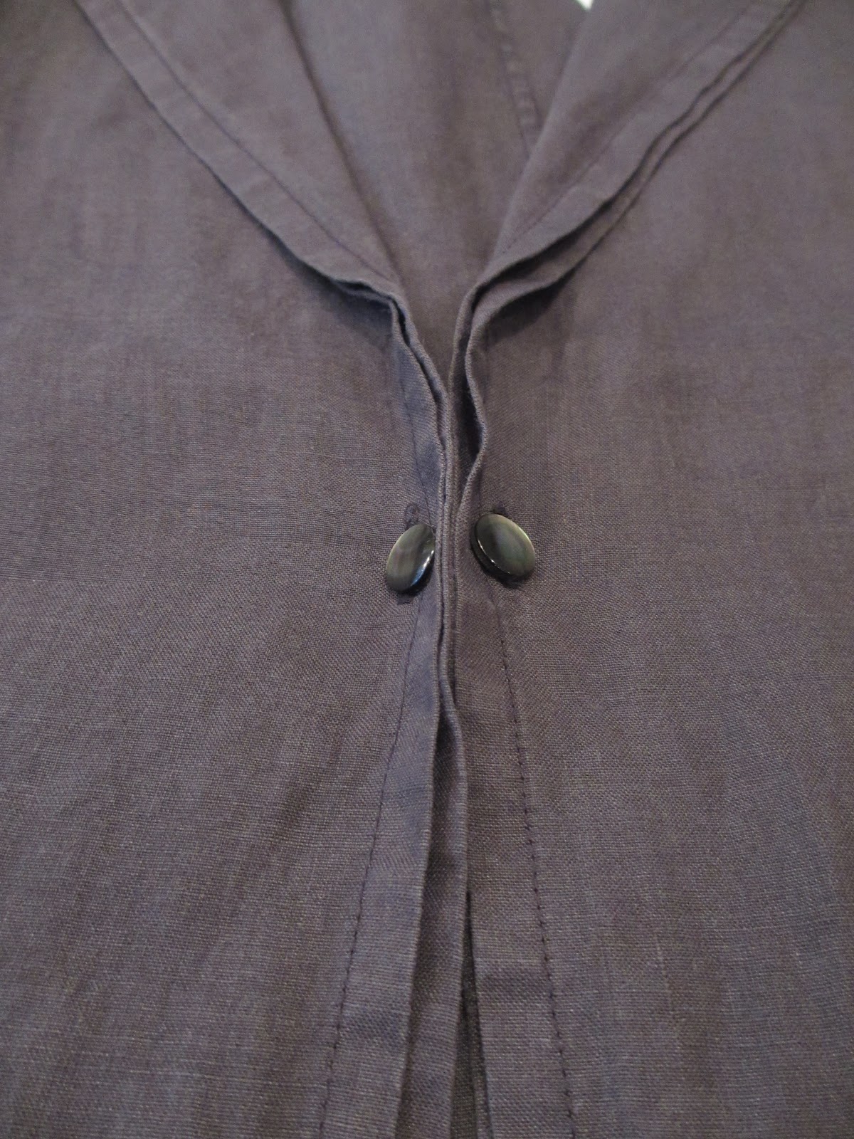 ボタンには天然の貝を拝み(おがみ)ボタンにしている。