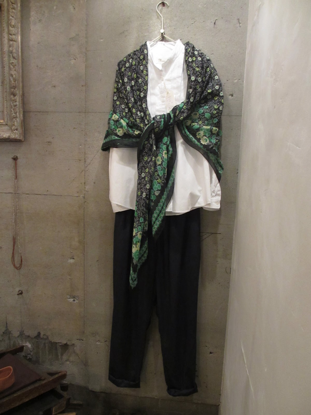 大人っぽいついでに、大判ストールを肩から