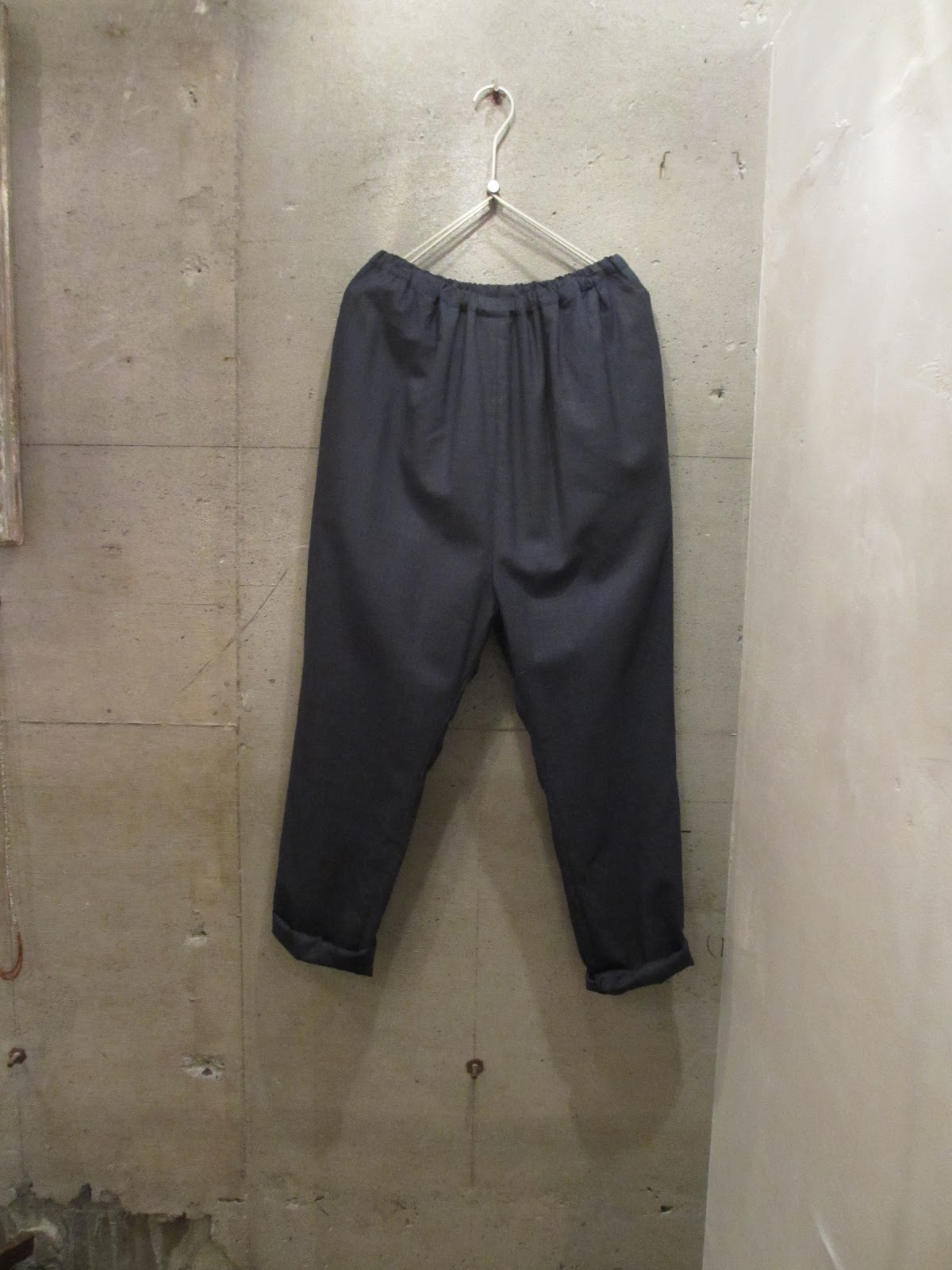 トロピカルウール素材のギャザーパンツ。