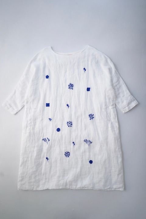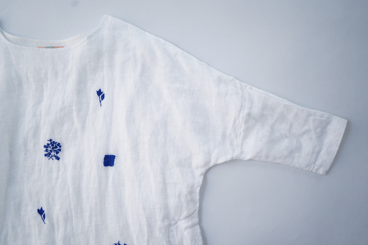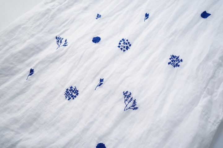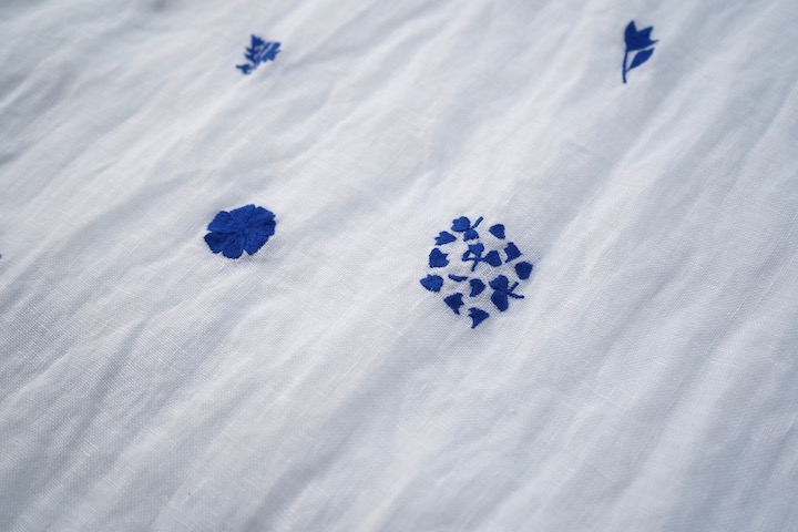 心地いいバランスで散りばめられた手刺繍の植物モチーフたち。